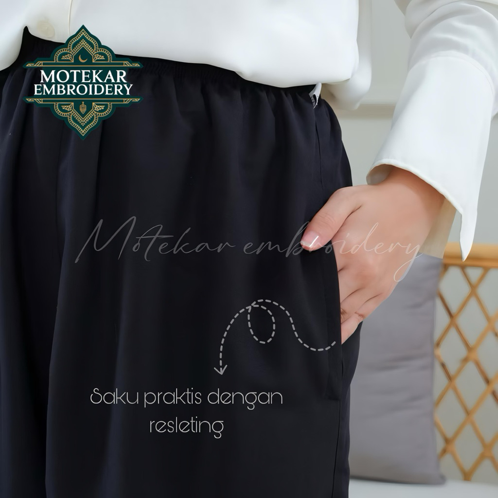 Celana Umroh dan Haji Wanita Bahan Katun Premium Bersaku Dengan Resleting dan Renda Mewah
