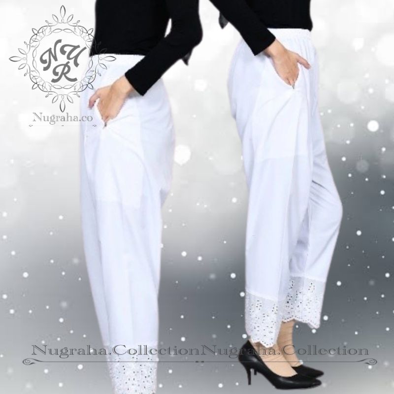 Celana Renda Haji Wanita Katun Premium Hitam Putih Pakai Saku dan Resleting Aman Multifungsi