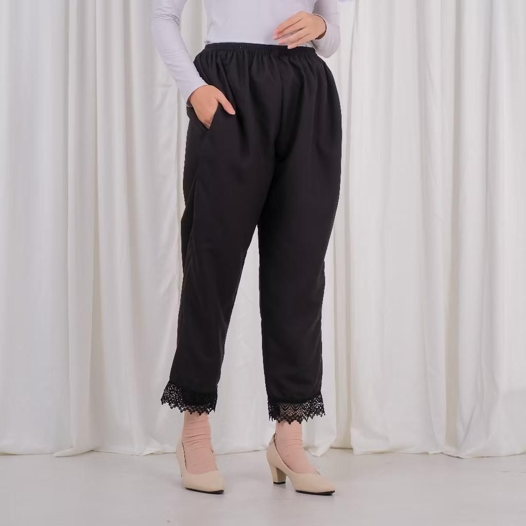 Celana Umroh Haji Wanita Bersaku Renda Mewah Dan Bahan Katun Premium
