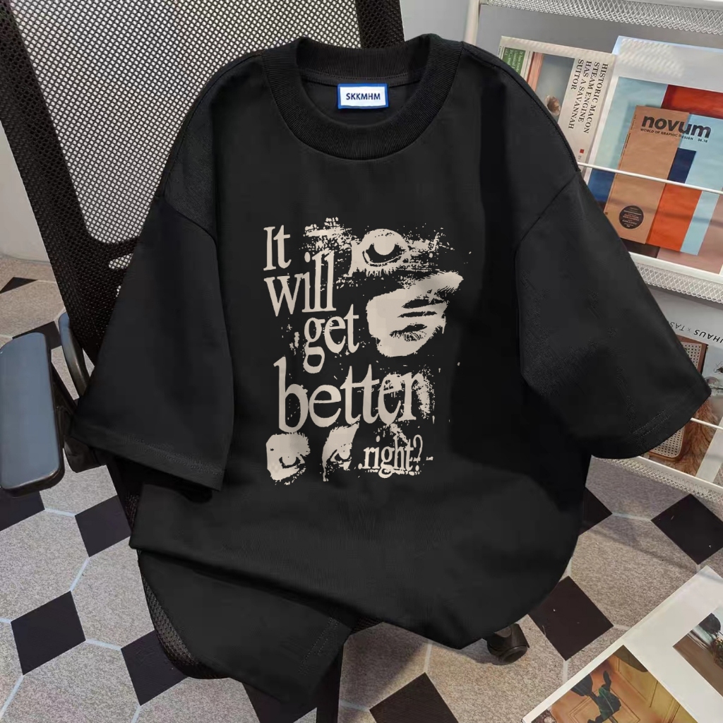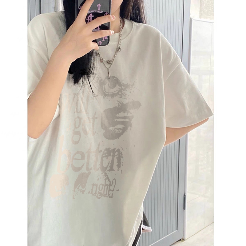 SEZO Atasan longgar biru tua T-Shirt Short Sleeve Baju Kaos Oversize Baju |Korean Women's T-Shirt Atasan Wanita Terbaru Hip Hop Retro Graffiti Letters Women's Funny T-Shirt