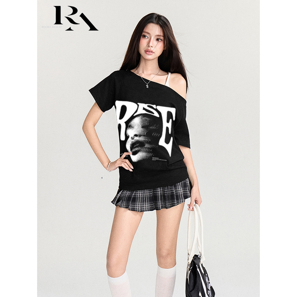 RIOD AOER baju atasan wanita terbaru Amerika Y2K Pola trendi putih cetak kaos lengan pendek wanita retro streer vintage ahs style stockholm