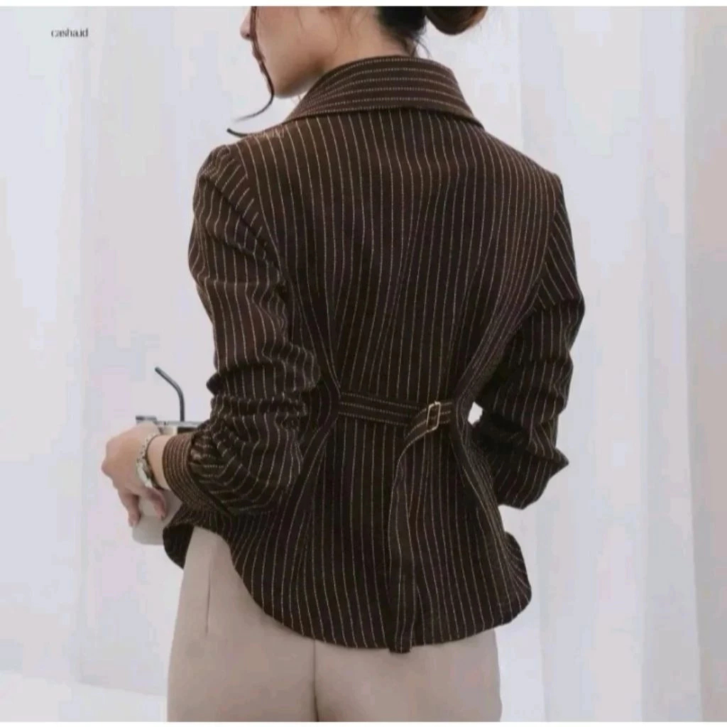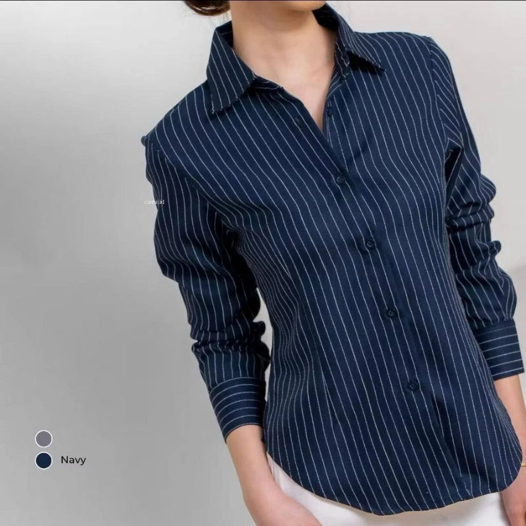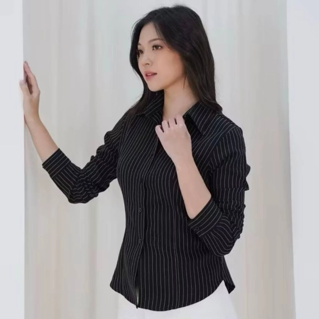 Kemeja Luna Stripe Salur Fit Body Wanita Bahan Semiwool