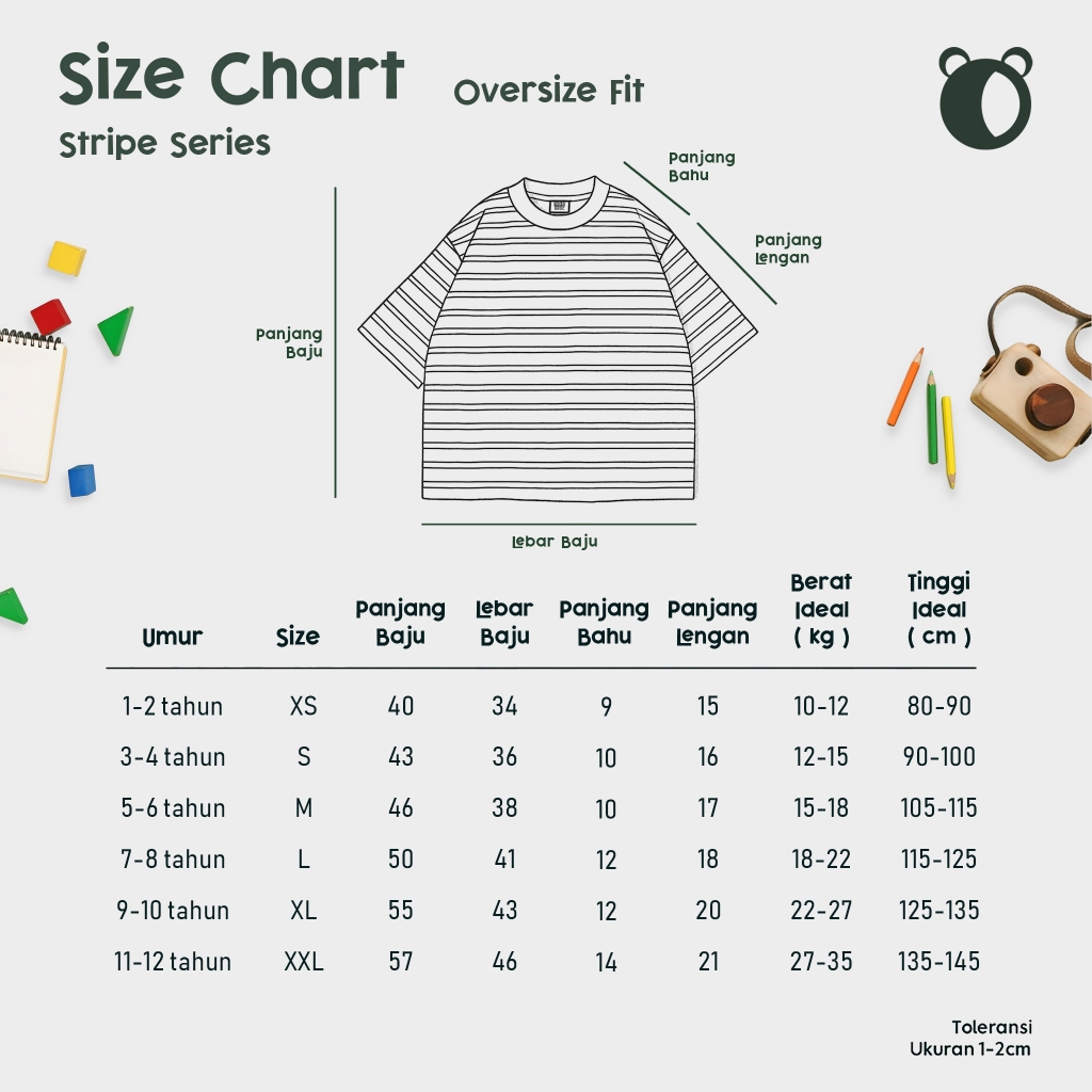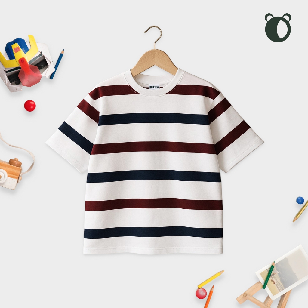 KUOKABASIC Kaos SALUR Anak Oversize | Kaos Stripe Anak Unisex | Baju Motif Garis Anak Premium 24s