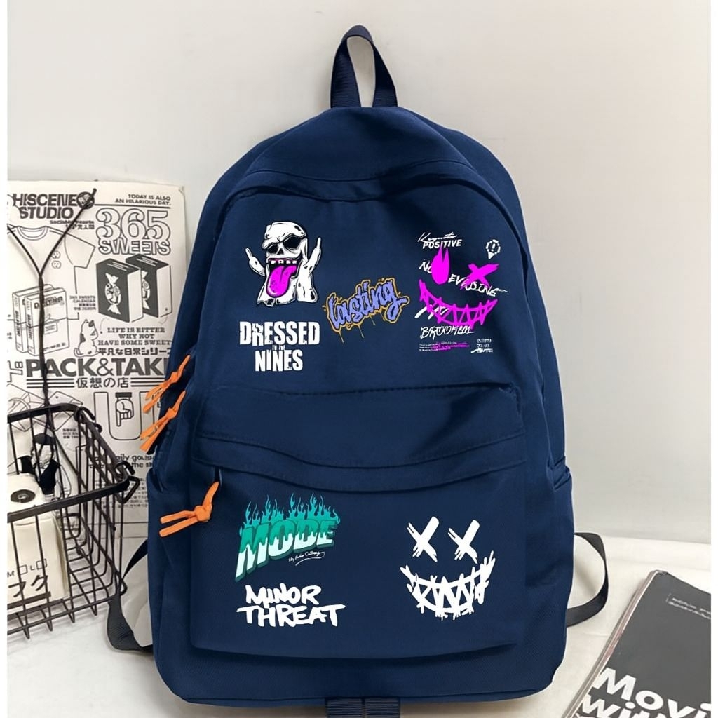 Tas Ransel Anak Sekolah Motif Black Metal Keren Pria Wanita Tas Backpack Trendy Kekinian Remaja Murah