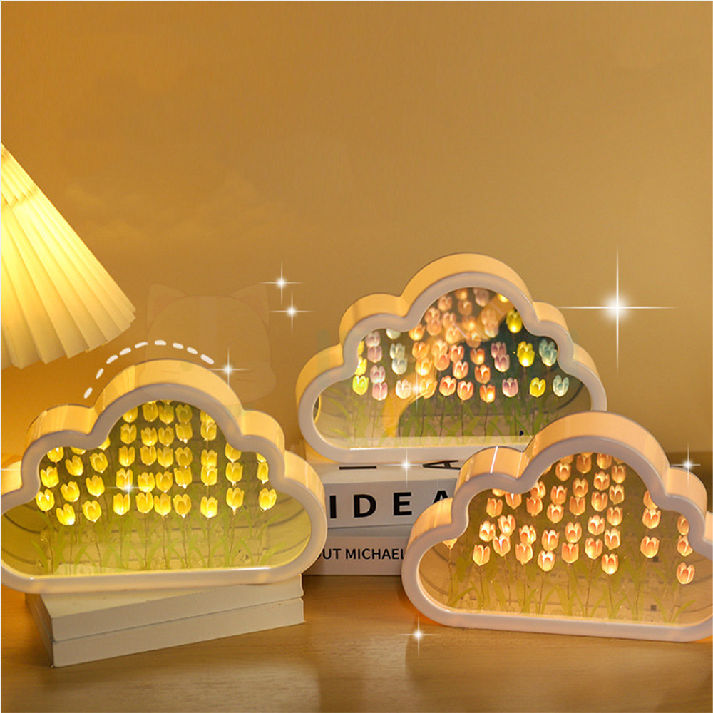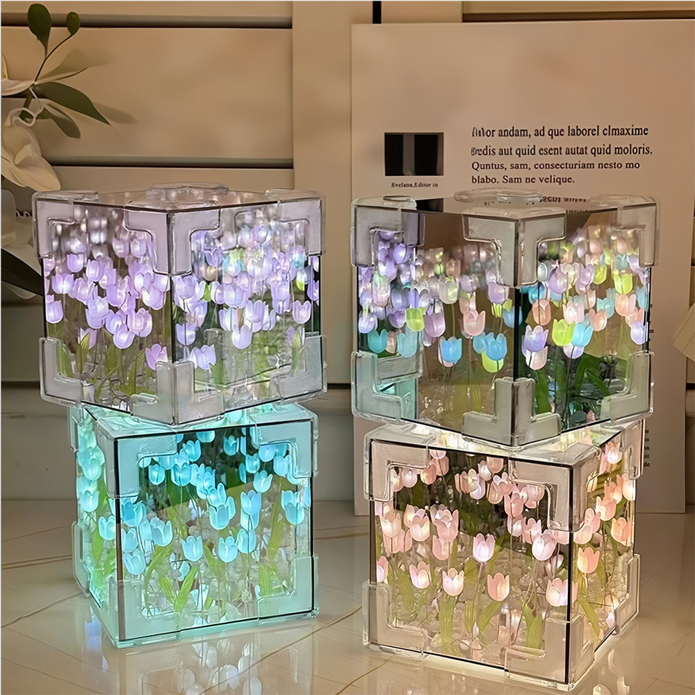 IDOON Lampu Aesthetic Dekorasi Tulip Akrilik Cubus 20 Bunga