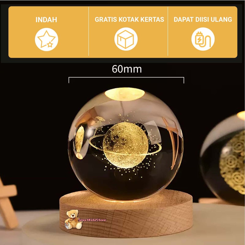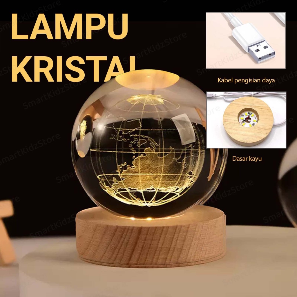 Lampu Kamar Tidur Led Lampu Hias Malam Bulan Bola Kristal Aesthetic LED Bola Kristal Aksesoris Cewe