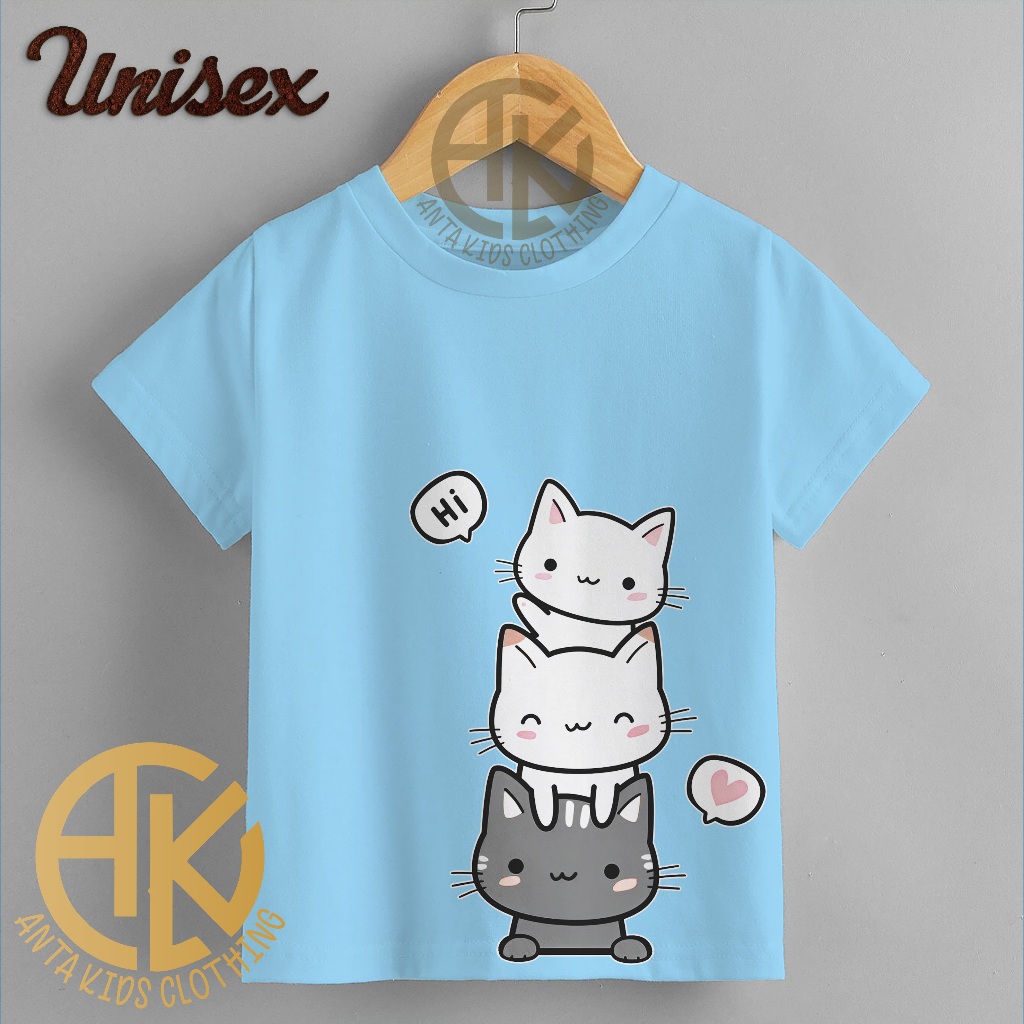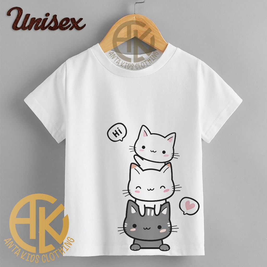 Kaos Oblong Anak Unisex Sablon Digital Motif Meow