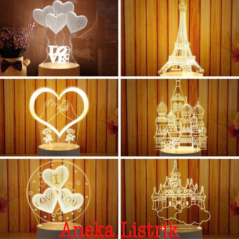 LAMPU HIAS LED 3D / LAMPU TIDUR HIAS DIMENSI 3 WARNA PUTIH KUNING WARMWHITE LAMPU 3D LED KACA TRANSPARAN HIASAN PAJANGAN TUMBLR KAMAR TIDUR AESTHETIC