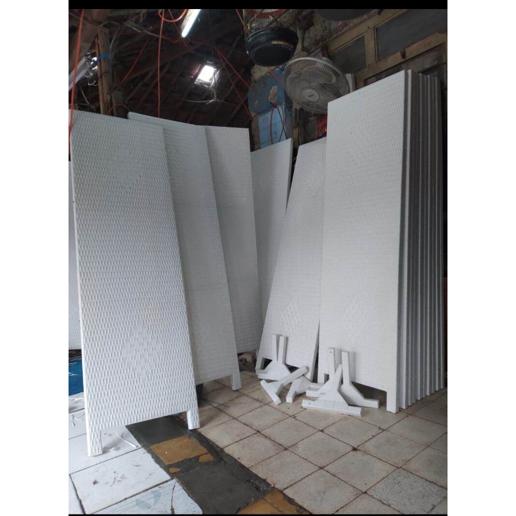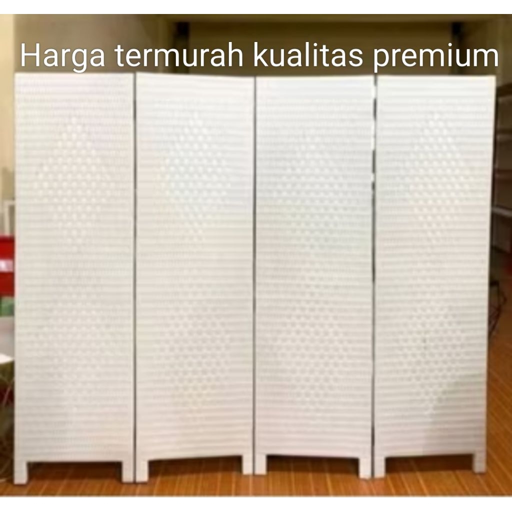 Penyekat Ruangan Rotan Sintetis Putih Minimalis Lipat