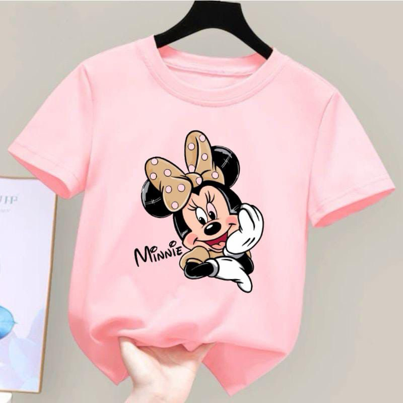 Baju Kaos Anak Perempuan Motif Mickey Mouse Minnie 100k Dapat 6pcs Untuk Umur (2-14 Tahun) Bahan Katun