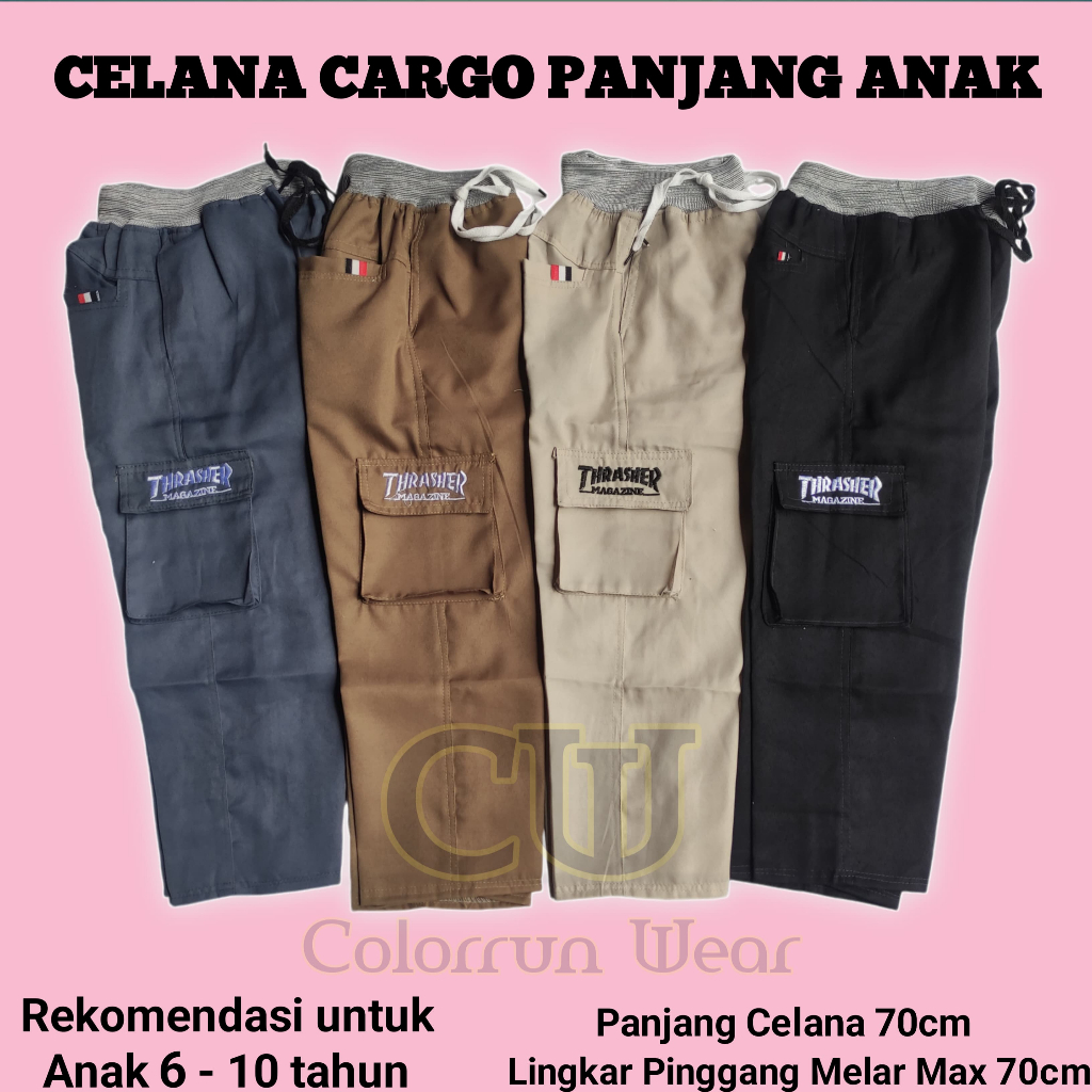 Paket 100 ribu isi 4 pcs Celana Anak cargo panjang umur 6 - 12 tahun kelas 1-6 SD