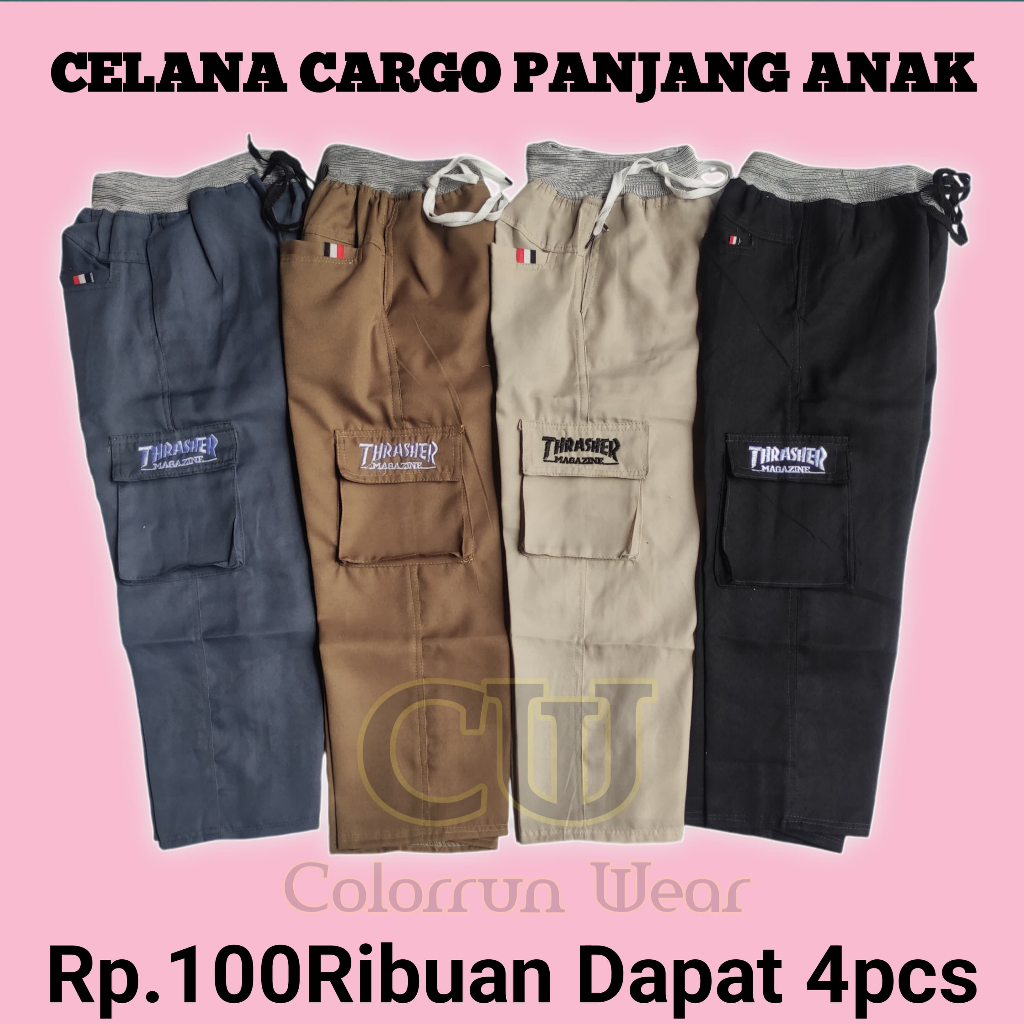 Paket 100 ribu isi 4 pcs Celana Anak cargo panjang umur 6 - 12 tahun kelas 1-6 SD
