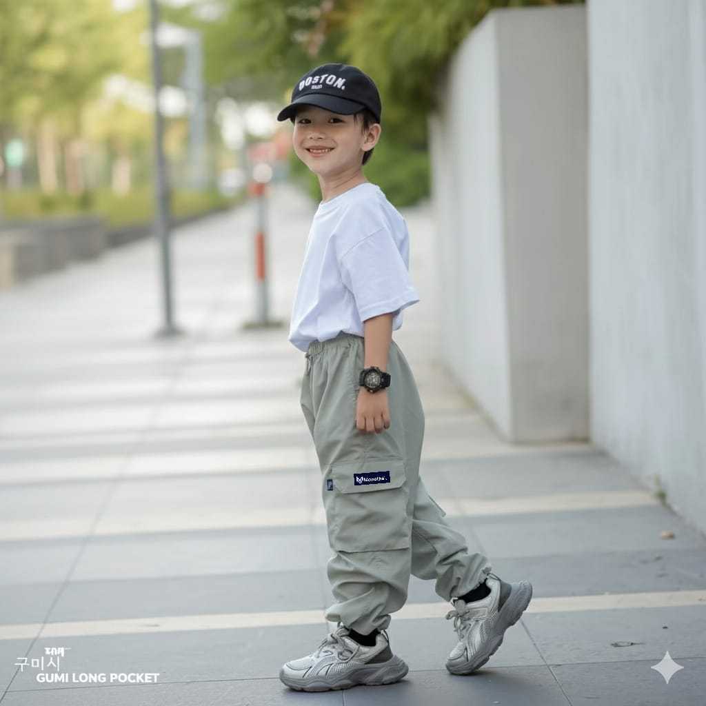 Monothe Kids - Celana Cargo Anak Joger Panjang Parasut Premium Korean Style 1-10 Tahun Laki Laki Perempuan