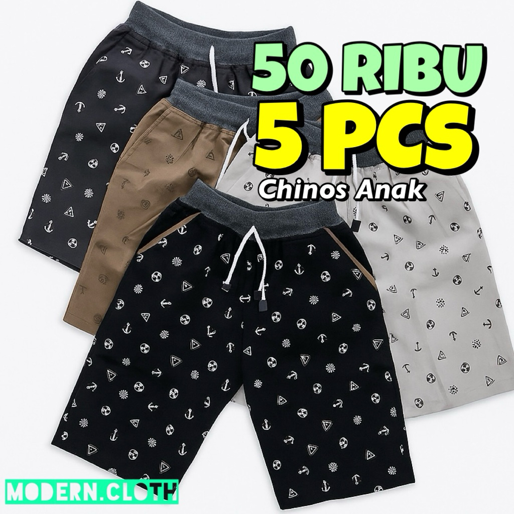 Paket 50 Ribu isi 5 Celana Pendek Anak Laki-laki Chino Motif Sablon Printing Usia 2 - 12 Tahun