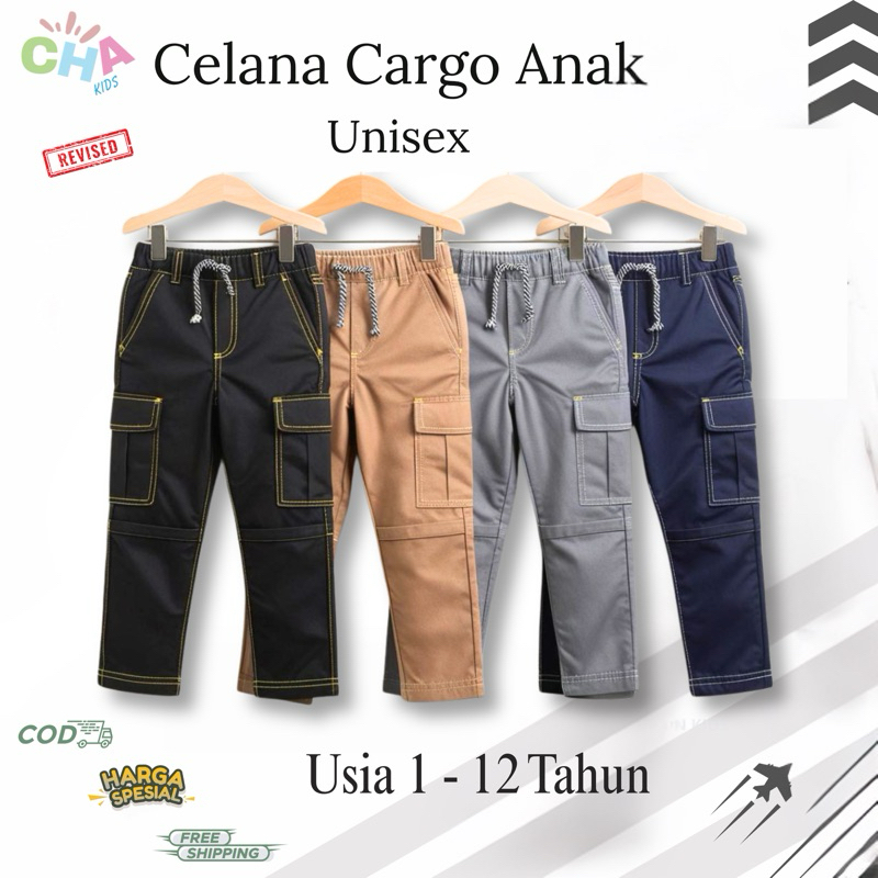 CELANA CARGO PANJANG ANAK USIA 1-13 TAHUN UNISEX LAKI-LAKI PEREMPUAN PREMIUM SAKU BANYAK