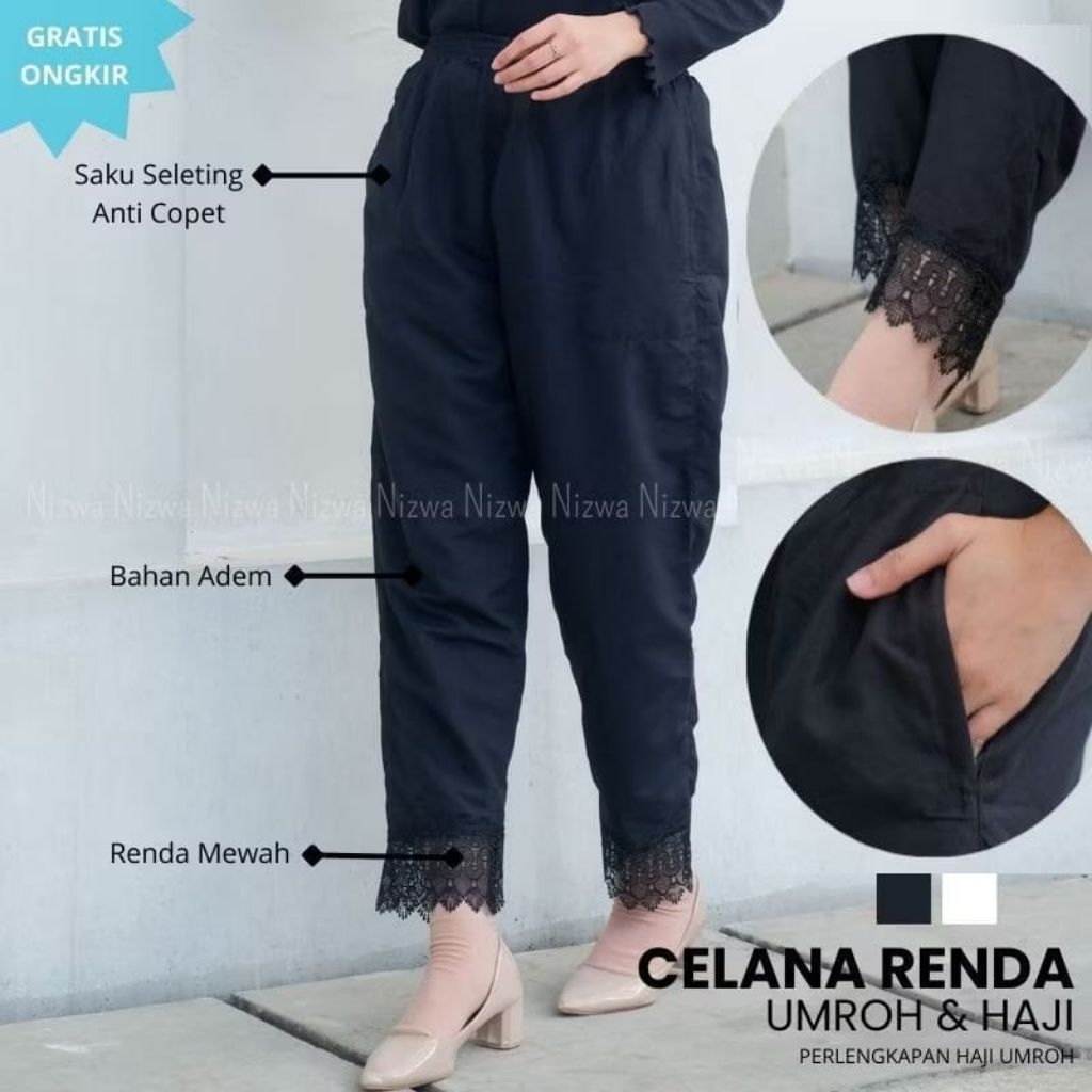 Celana Umroh Wanita & Haji Bahan Katun Panjang Renda