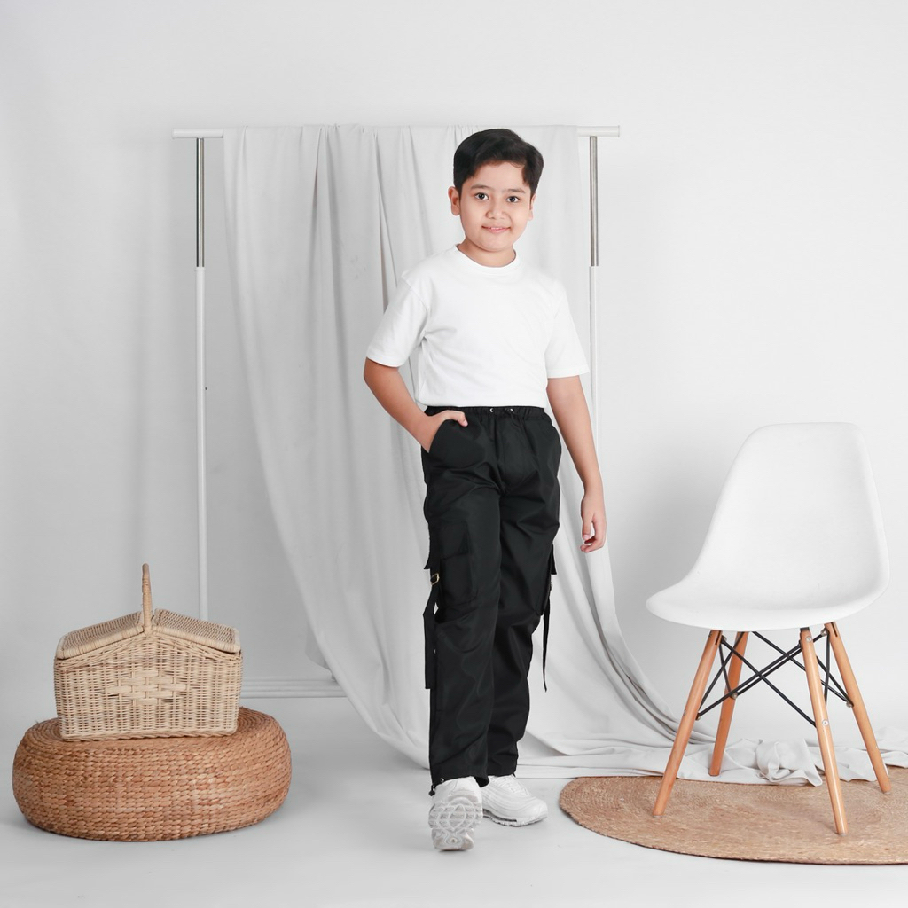 Meeyoukids Celana Parasut Kargo Anak Laki-laki Perempuan 1-12 Th Celana Panjang Anak Hitam