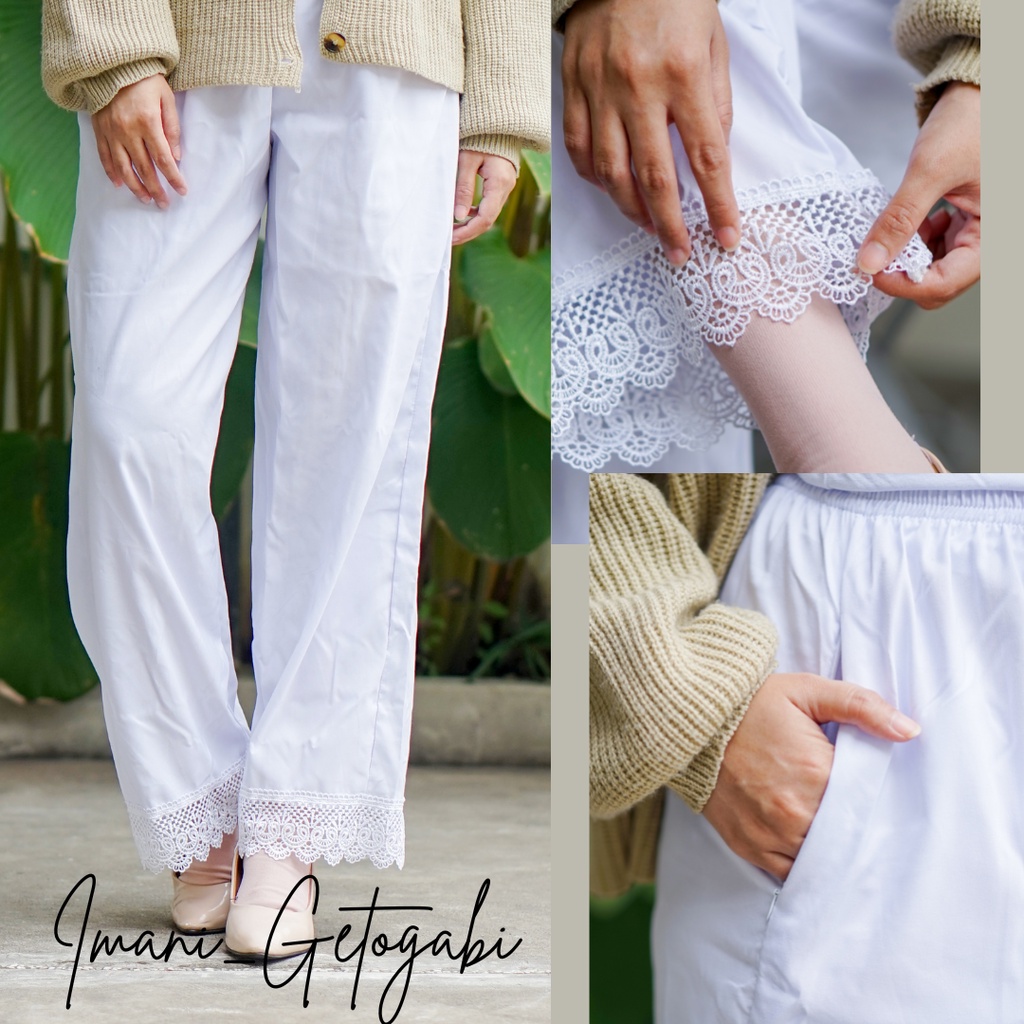 Celana Cardet Renda Celana Ihrom Wanita Renda bahan katun/sandal putih dan hitam Perlengakapan Umroh