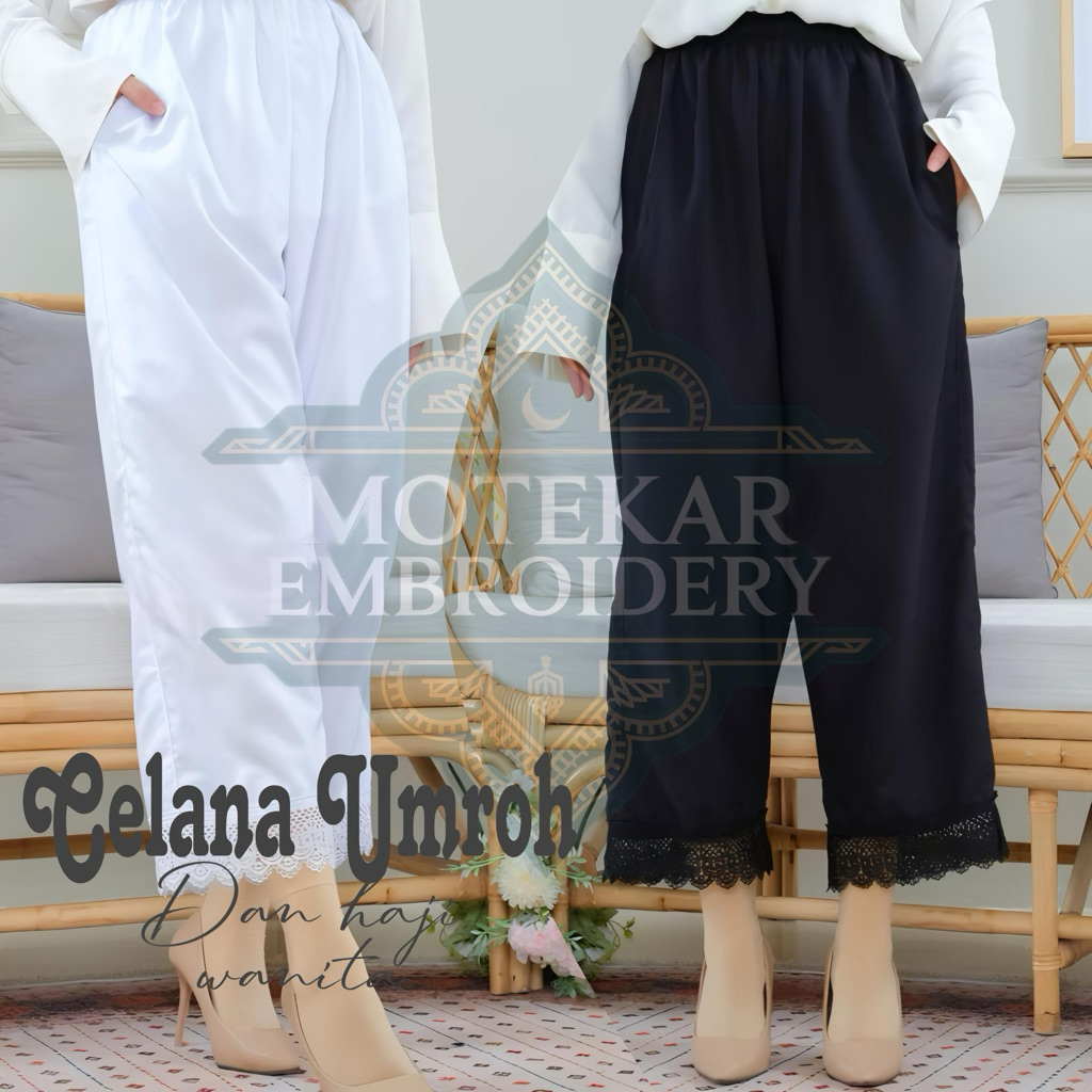 Celana Umroh dan Haji Wanita Bahan Katun Premium Bersaku Dengan Resleting dan Renda Mewah