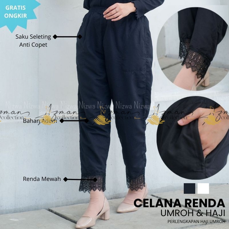 CELANA WANITA RENDA UMROH & HAJI -- CELANA KATUN SUPER PREMIUM -- CELANA IBADAH RENDA ELEGAN -- PREMIUM COMFORT IHRAM PANTS