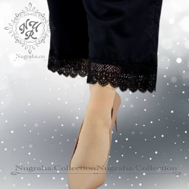 Celana Renda Haji Wanita Katun Premium Hitam Putih Pakai Saku dan Resleting Aman Multifungsi