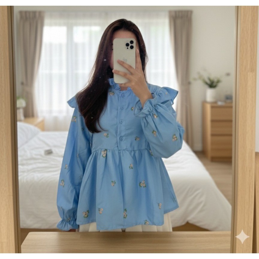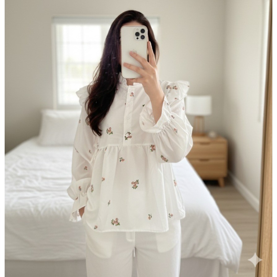 Atasan Wanita Aura Blouse Katun Motif Bunga-Bunga