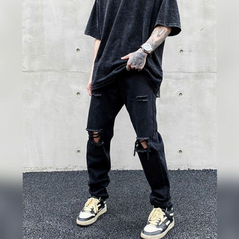Celana Sobek Pria Ripped Jeans | Loose Fit Denim Premium Hype Size 27-37