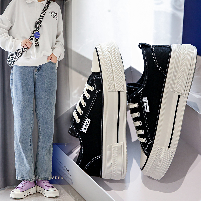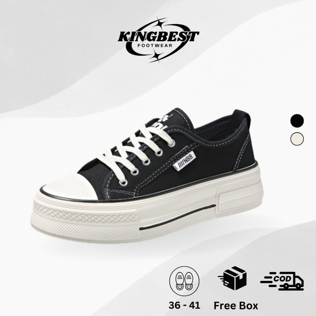 Kingbest "FREE BOX" (Size 36 - 41) Aerin Sepatu Wanita Canvas Bertali kasual Korea 9178