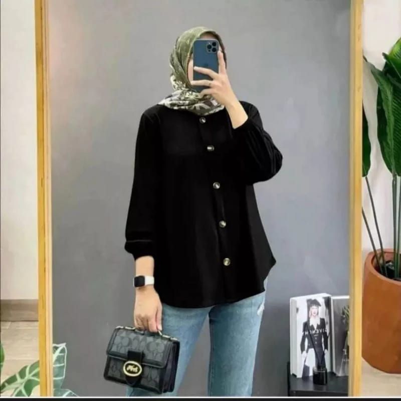 Kemeja Wanita Kekinian / Kemja Polos Crinkel Air Flow / Atasan Wanita Lengan Panjang / Blouse Wanita