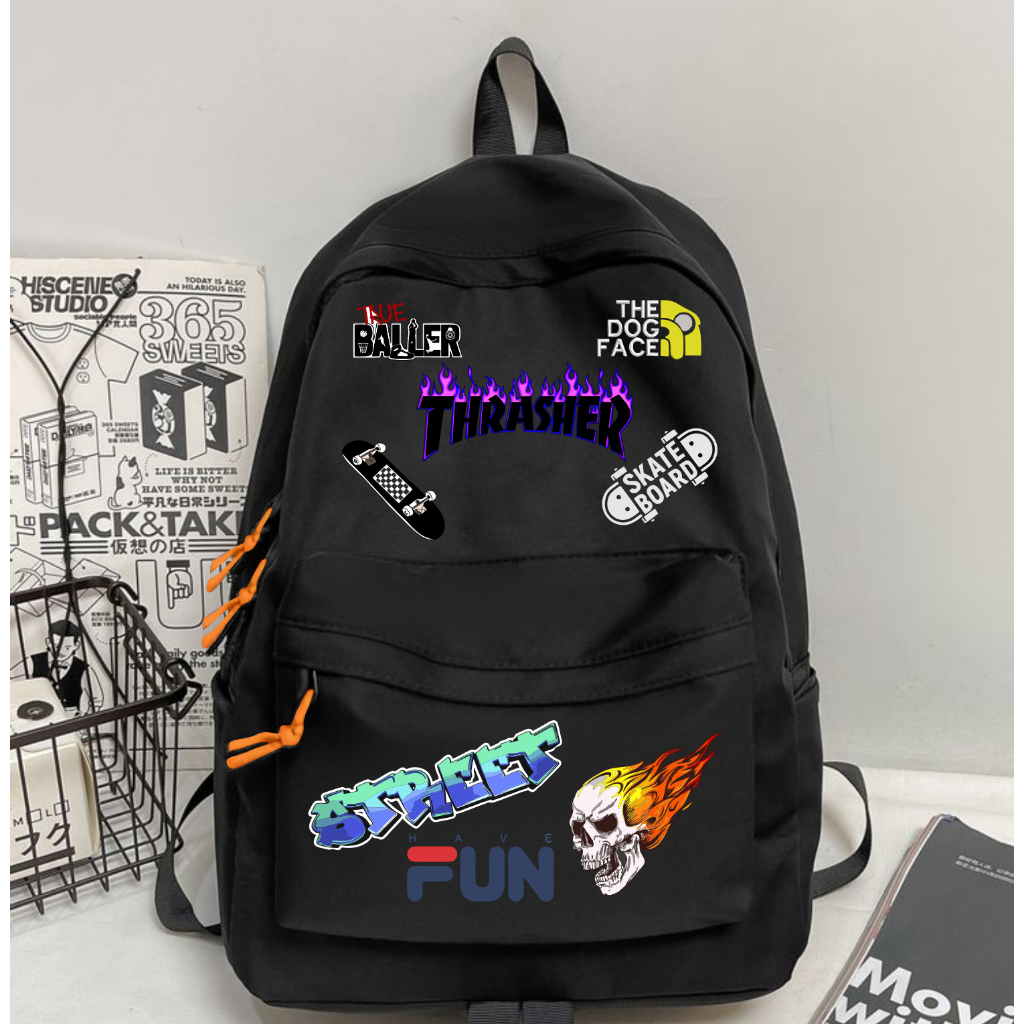 Tas Distro Ransel Anak Pelajar Sekolah Laki Laki SD SMP SMA Motif Black Metal Backpack Pria Dewasa
