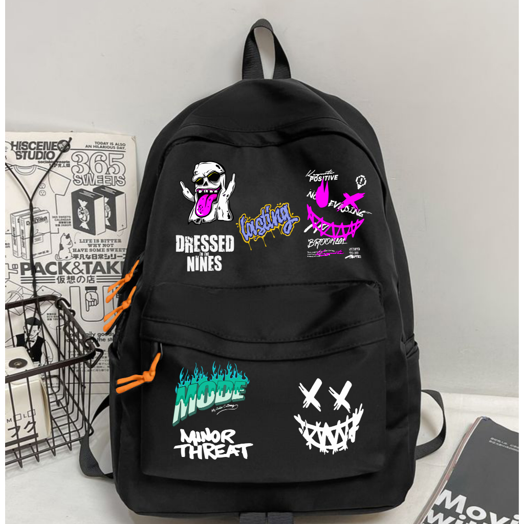 Tas Distro Ransel Anak Pelajar Sekolah Laki Laki SD SMP SMA Motif Black Metal Backpack Pria Dewasa