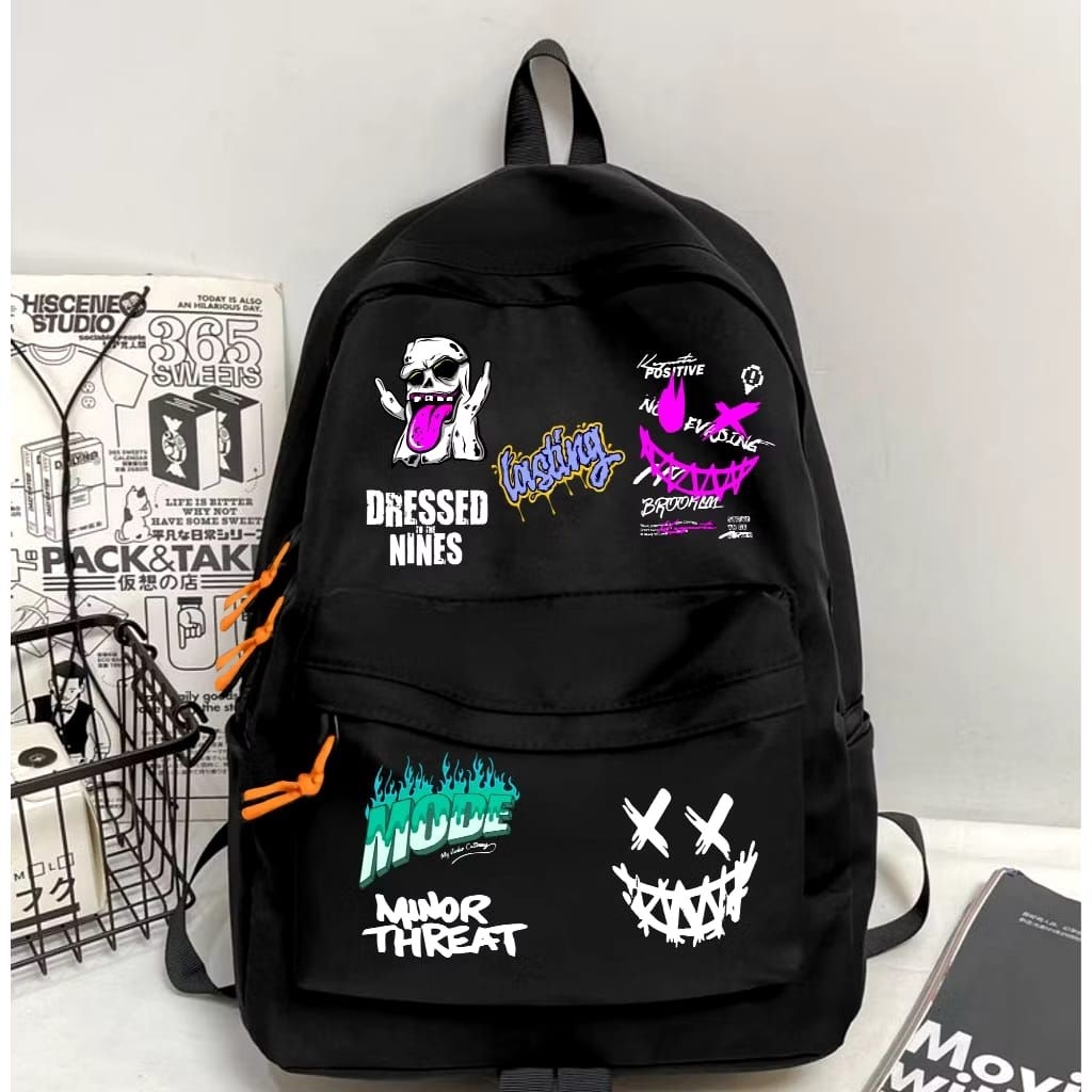 Tas Ransel Anak Sekolah Motif Black Metal Keren Pria Wanita Tas Backpack Trendy Kekinian Remaja Murah