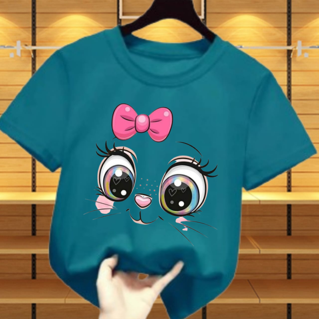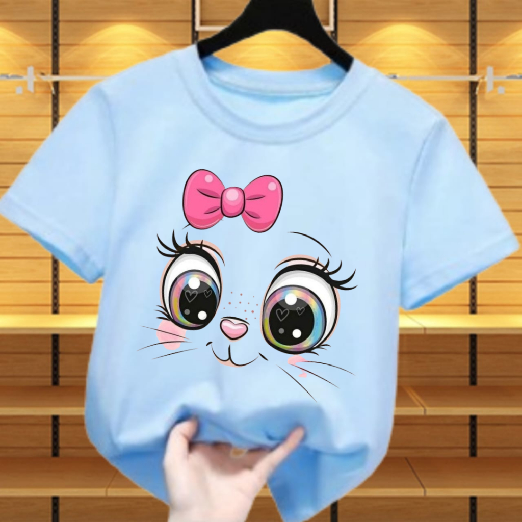 Kaos Atasan Anak Perempuan Motif Little Cat Kucing Kece Lucu Usia 2-12 Tahun Oblong Baju Cewek Lengan Pendek Tshirt