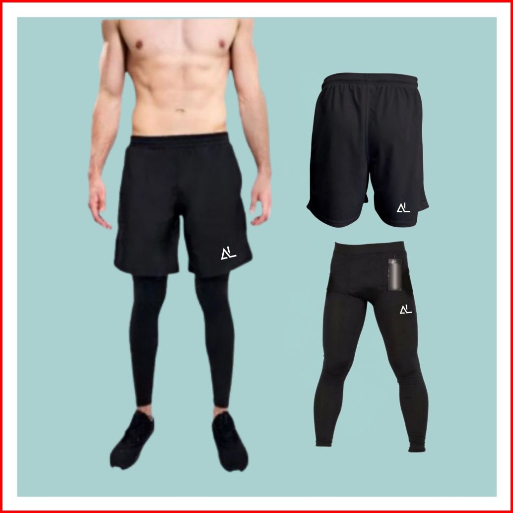 Stelan Olahraga Pria Celana Lari Dan Legging Baselayer Panjang Sport Futsal Lari Gym Basket Voly