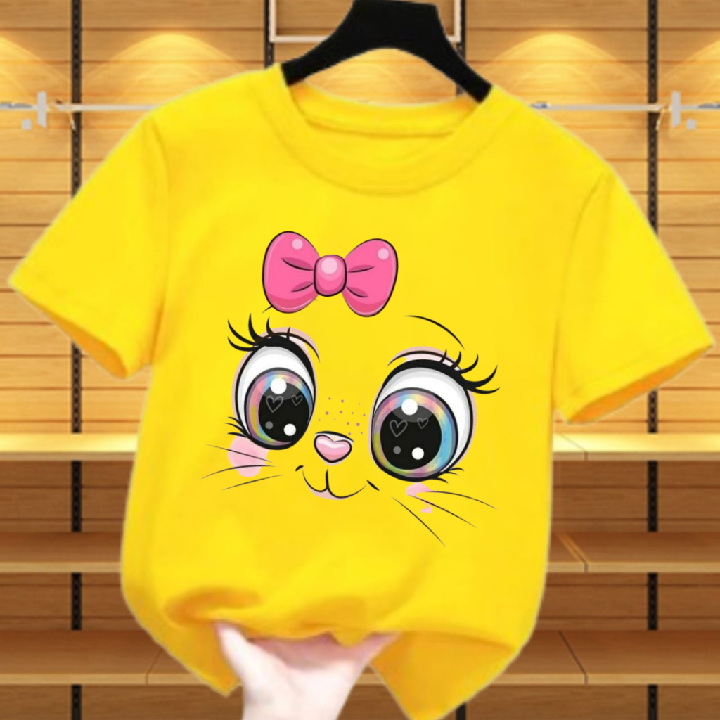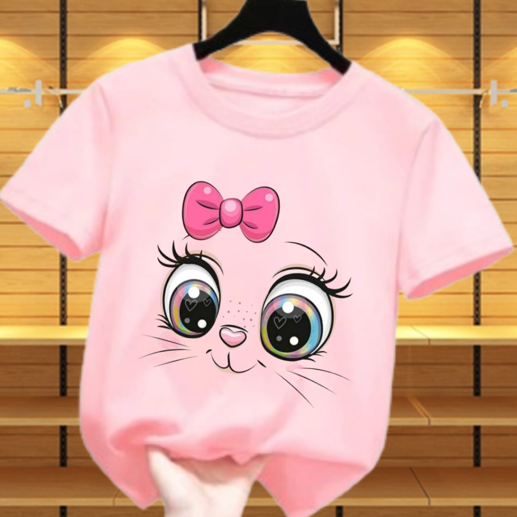 Kaos Atasan Anak Perempuan Motif Little Cat Kucing Kece Lucu Usia 2-12 Tahun Oblong Baju Cewek Lengan Pendek Tshirt
