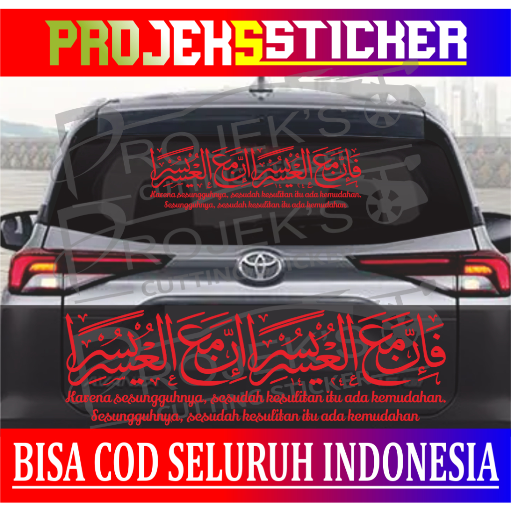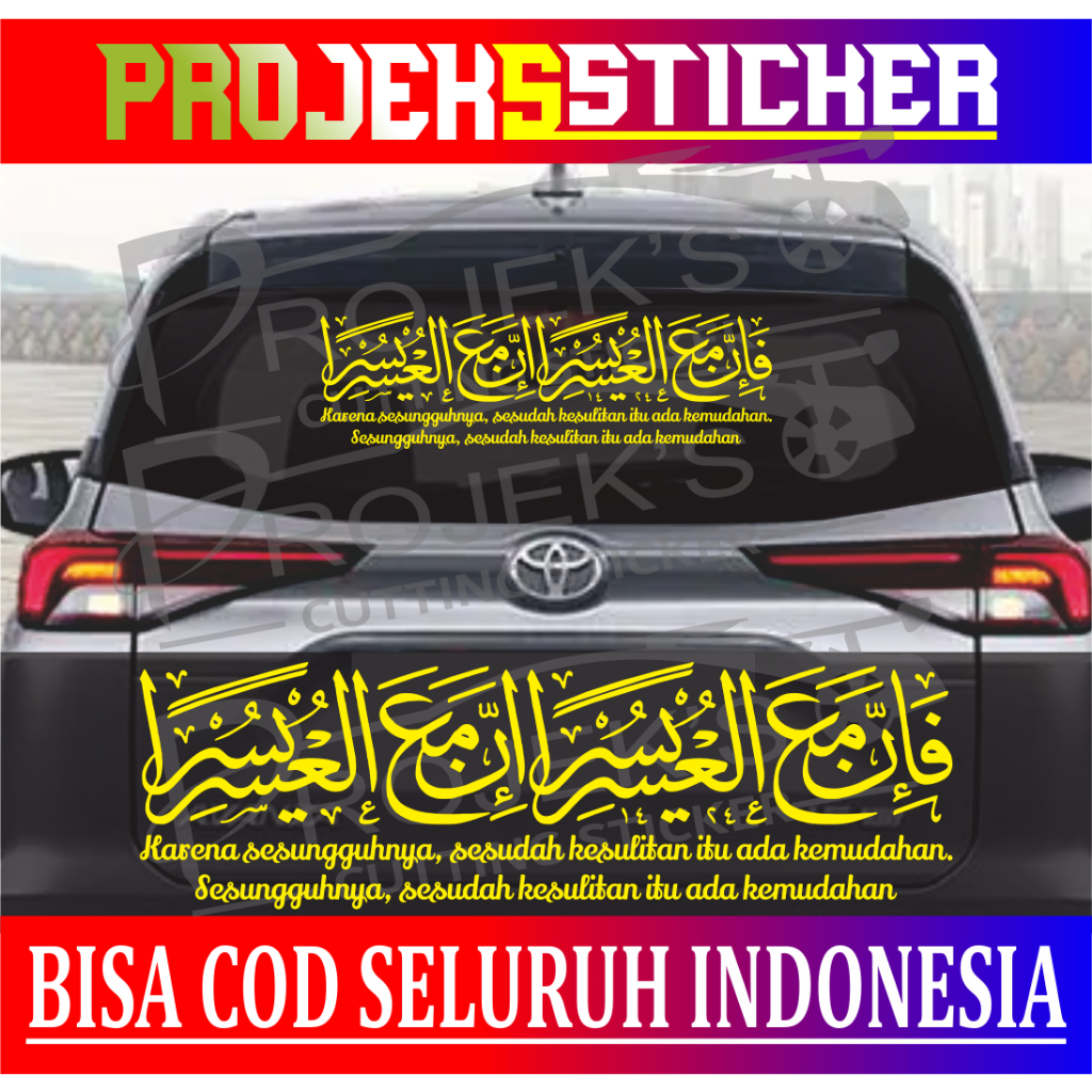 Stiker kaligrafi INNA MA'AL USRI YUSRO kaca mobil