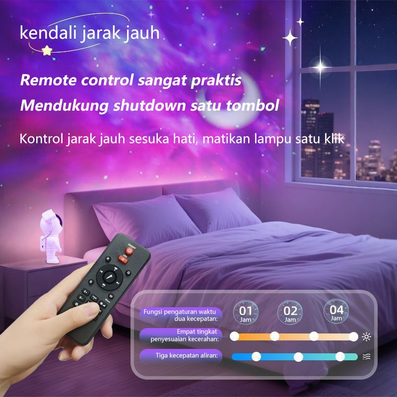 【 1 tahun】Proyektor Galaksi Astronot Lampu Tidur Langit Bintang dengan Speaker Bluetooth, Penerangan Bulan & Bintang, Dekorasi Ran