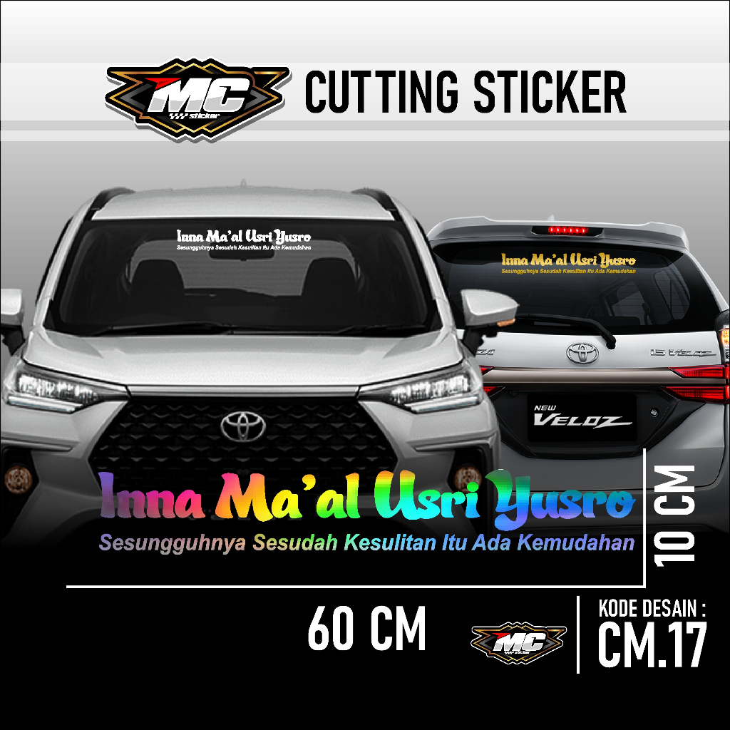 Cutting Stiker Mobil Tulisan INNA MAAL USRI YUSRO Kaligrafi Arab Terbaru