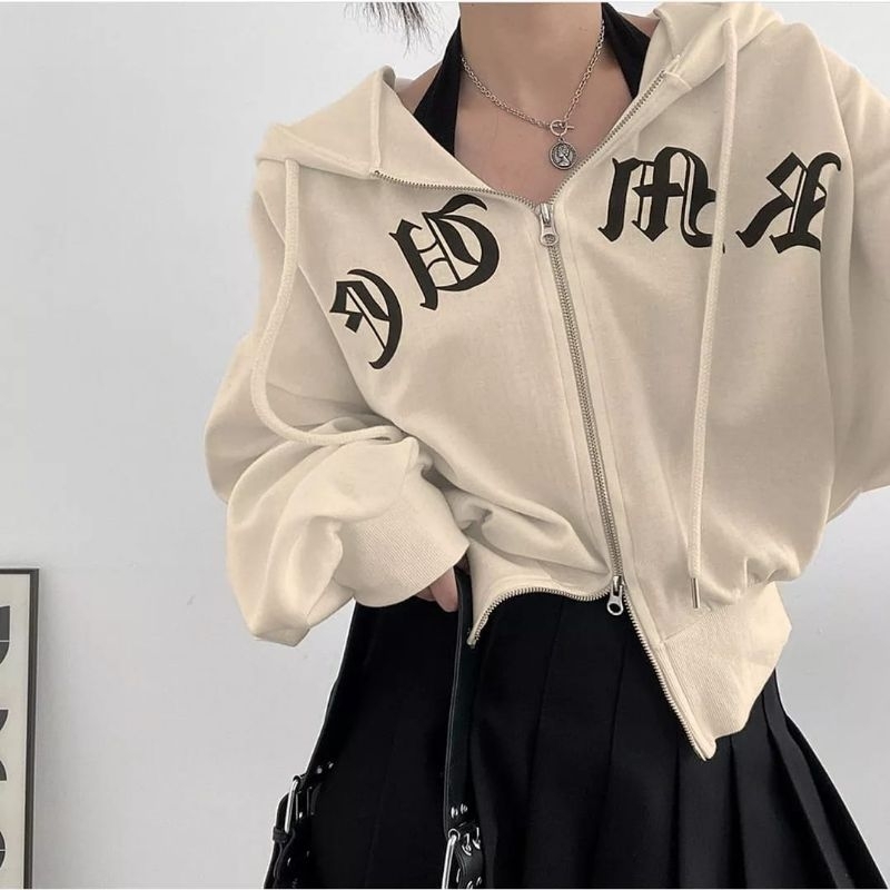 JAPANESE DOUBLE ZIPPER JAKET WANITA CROP KOREAN STYLE