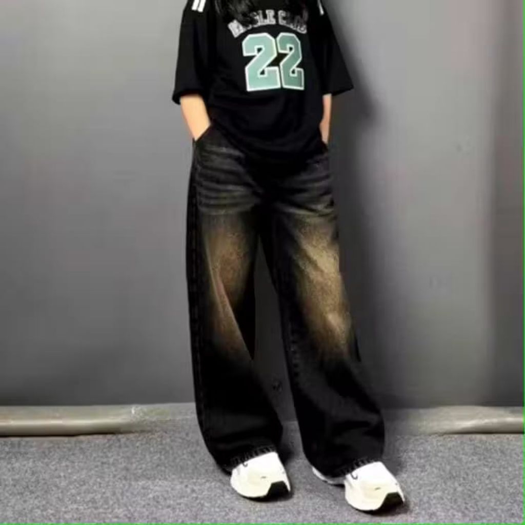 Celana Panjang Jeans Unisex Gombrong Anak Usia 4 - 15 Tahun Wisker Terbaru Bahan Streetc Pinggang Full Karet 6 Variasi Warna