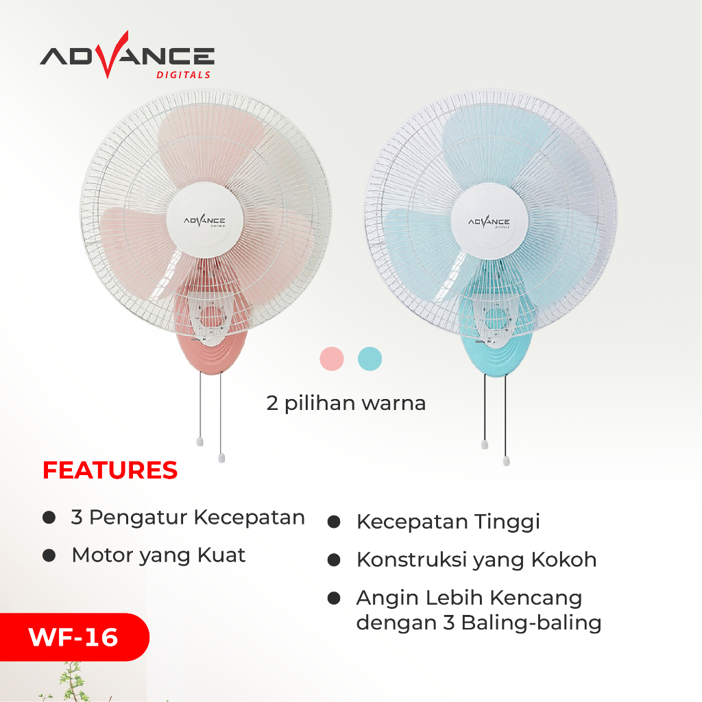 【Free Bubble Wrap】Advance WF-16 Kipas Angin Dinding 16 inch Kipas dengan Hembusan Angin Kencang Daya hanya 60 Watt Gar