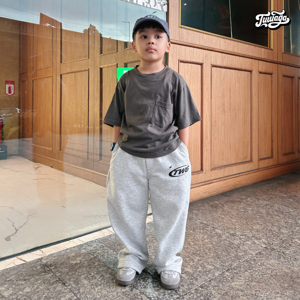 Tuwaga Kids Sweatpants Loose Celana Baggy Skena Anak Laki-laki Perempuan Balita fleece Abu Misty