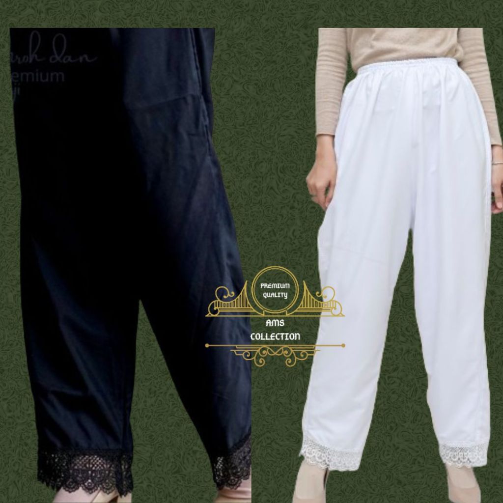 Celana Umroh Haji Wanita Bahan Katun Premium Bersaku Renda Mewah
