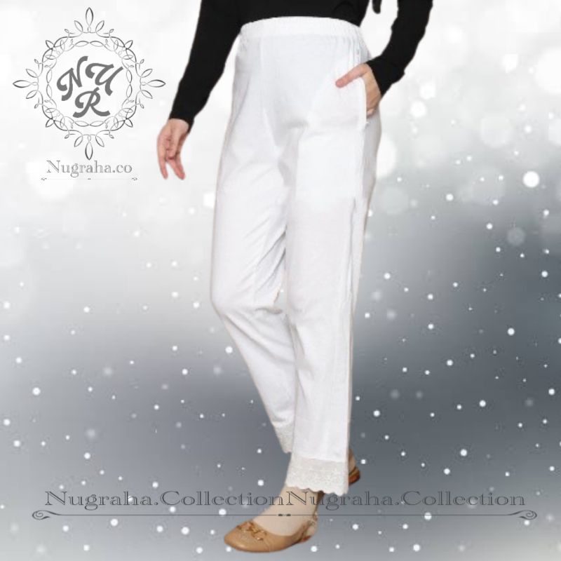Celana Renda Haji Wanita Katun Premium Hitam Putih Pakai Saku dan Resleting Aman Multifungsi