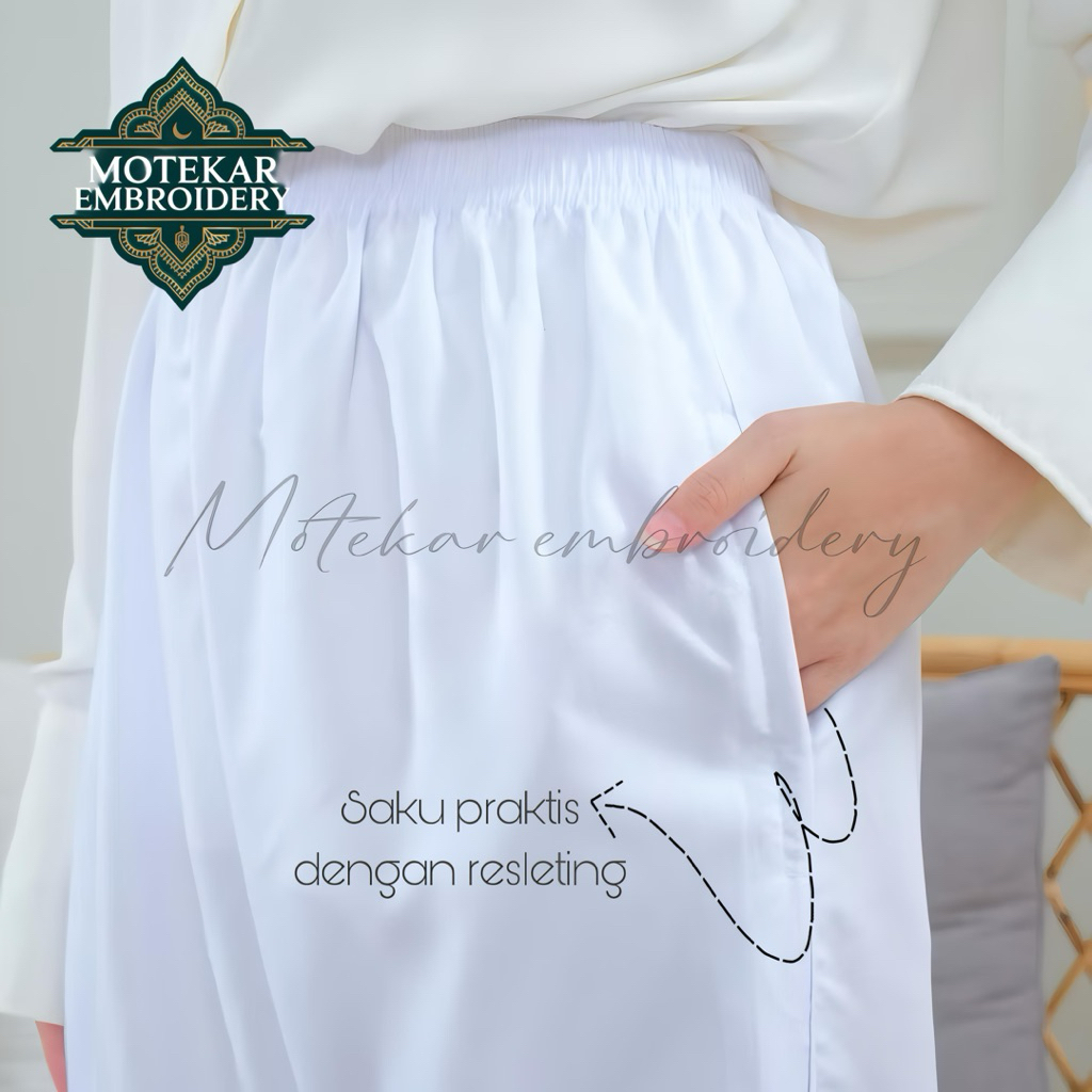 Celana Umroh dan Haji Wanita Bahan Katun Premium Bersaku Dengan Resleting dan Renda Mewah