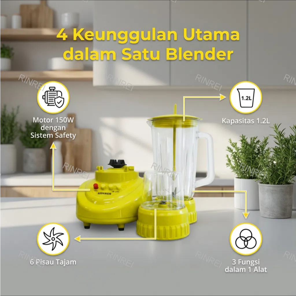RINREI 2IN1 Blender Plastik Foodgrade blender portable Plastik Yasaka