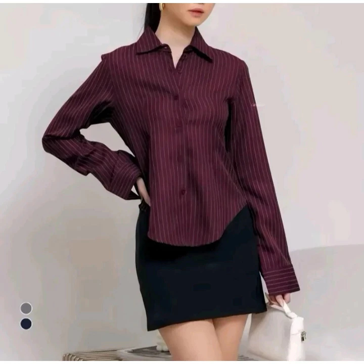 Kemeja Wanita Fitted Body Lengan Panjang Tali Belakang