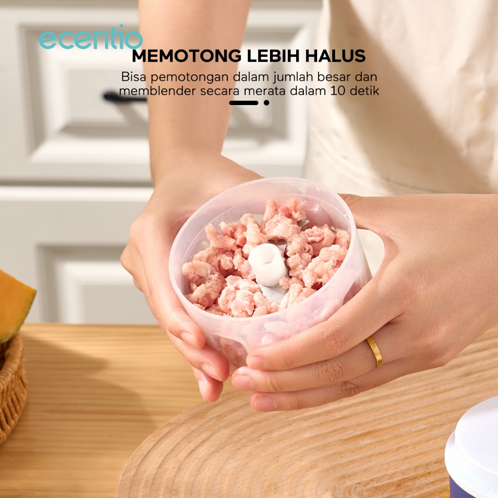 Ecentio Mini Chopper Blender 6 pisau 250ml Portable Penggiling Bumbu Dapur Portable biru gelap