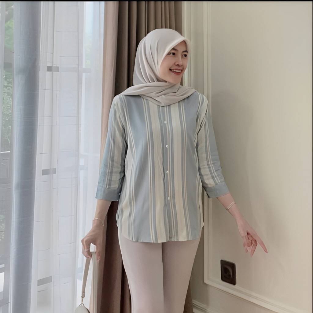 Baju Atasan Wanita / Kemeja wanita Rayon Terbaru Motif Salur Oversize Ld 120
