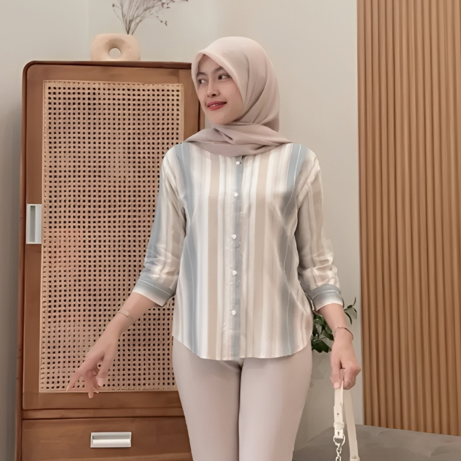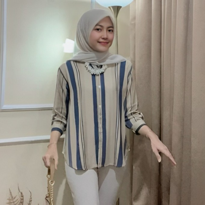 Baju Atasan Wanita / Kemeja wanita Rayon Terbaru Motif Salur Oversize Ld 120